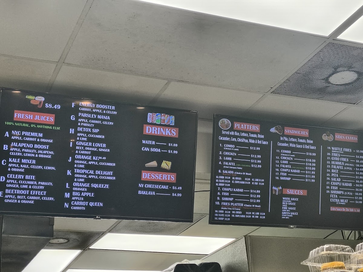 Two Chapli Kabab (Flat Kabab) Served in Pita, Romaine Lettuce, Cucumber, Onions, Tomatoes, Chickpeas, Jalapenos, Pickles, Olives, Corn, Giardiniera, Our Signature White Sauce and Hot Sauce.